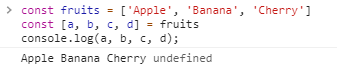 console.log(a, b, c, d); // Apple Banana Cherry Undefined