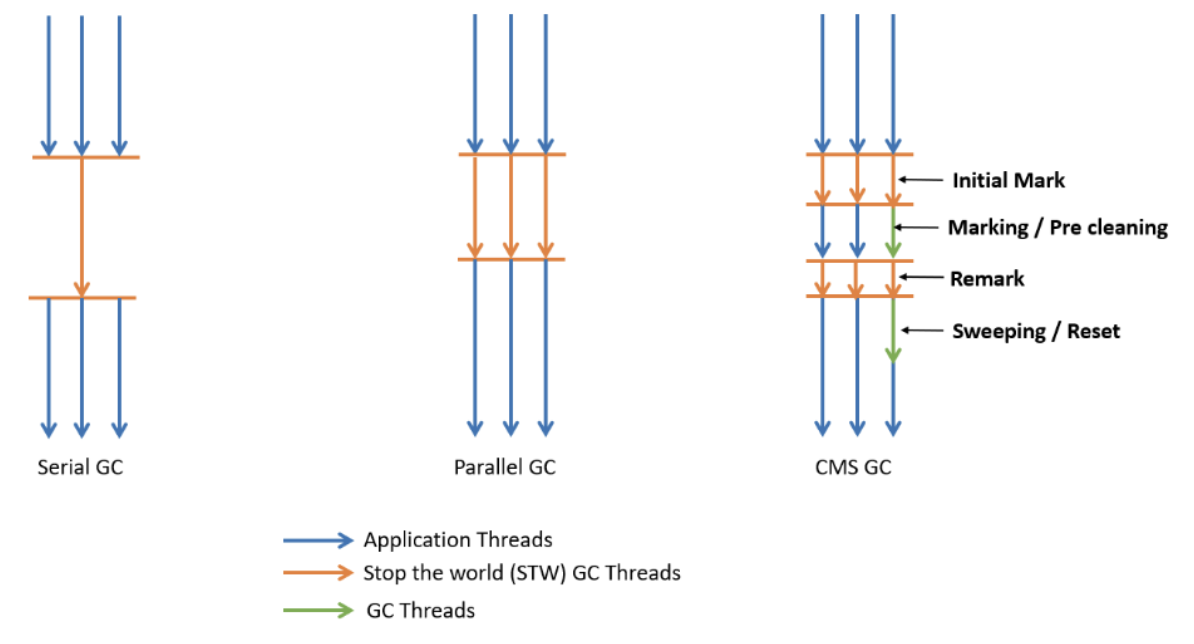 장점 - 위의 방식대로 진행하기 때문에 CMS GC는 STW 시간이 매우 짧기 때문에 Low Latency GC라고도 부르며, 응답속도가 매우 중요할 때 CMS GC를 사용한다.