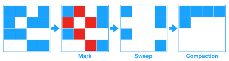 Serial GC의 경우 Young Generation에서의 GC는 Mark-Sweep 알고리즘을 사용하고 Old Generation에서는 Compact 과정이 추가된 Mark-Sweep-Compact 알고리즘을 사용한다.