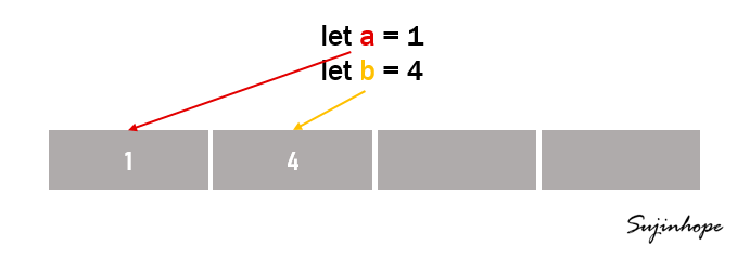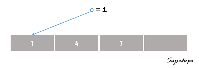 let c = 1 // 새로운 메모리가 할당되는 것이 아니라 1이 이미 할당된 기존 메모리를 참조